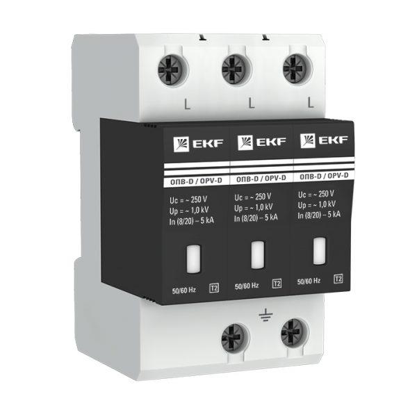 Главная страница » Магазин » Модульное оборудование » Ограничитель импульсных напряжений ОПВ-D/3P In 5кА 275В | EKF PROxima